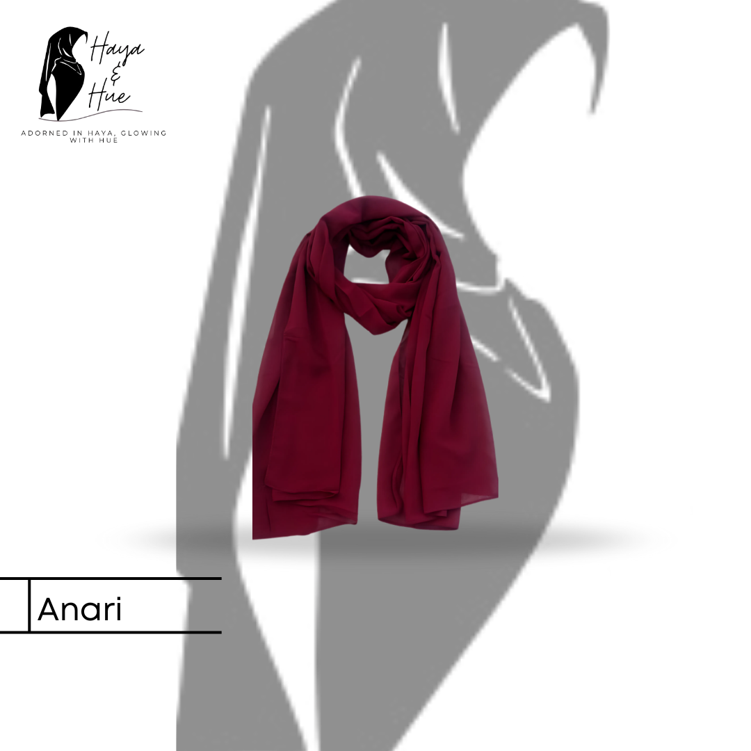 Add a touch of luxury to your wardrobe with our Anari Premium Georgette Hijab ❤️. Inspired by the richness of pomegranate, this shade blends vibrance with sophistication, making it perfect for women who want to look graceful while leaving a lasting impression. Crafted from lightweight, soft georgette, it drapes effortlessly and feels just as comfortable as it looks stylish. Whether for college, office, or a special occasion, this hijab instantly elevates your look with confidence.
